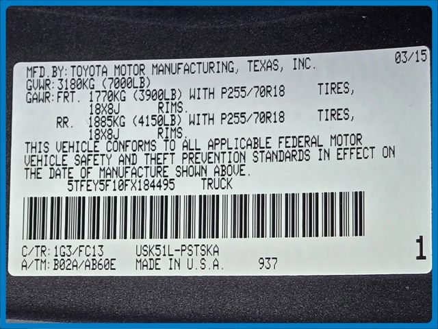 - VIN : 5TFEY5F10FX184495