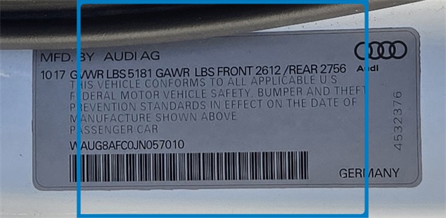 - VIN : WAUG8AFC0JN057010