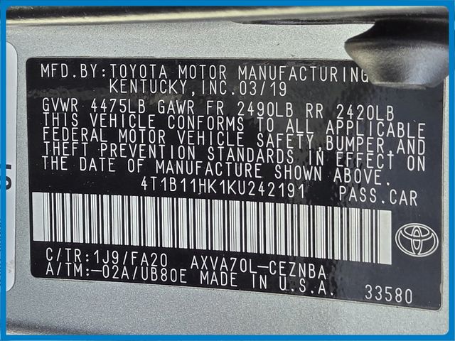- VIN : 4T1BZ1HK8JU013708