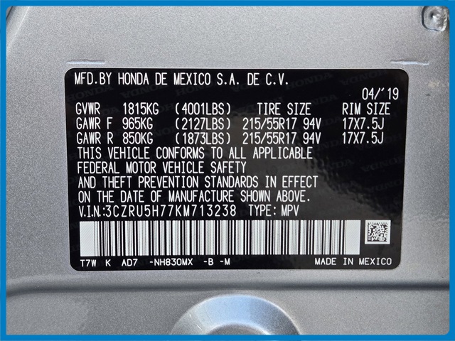 - VIN : 3CZRU5H77KM713238