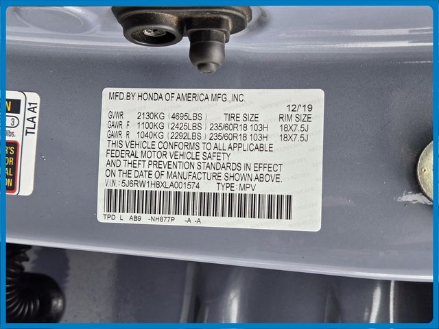 - VIN : 5J6RW1H8XLA001574