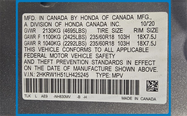 - VIN : 2HKRW1H51LH425245