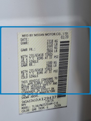 - VIN : 5N1AZ2AJ2LN129437
