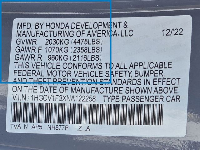 - VIN : 1HGCV1F3XNA122258