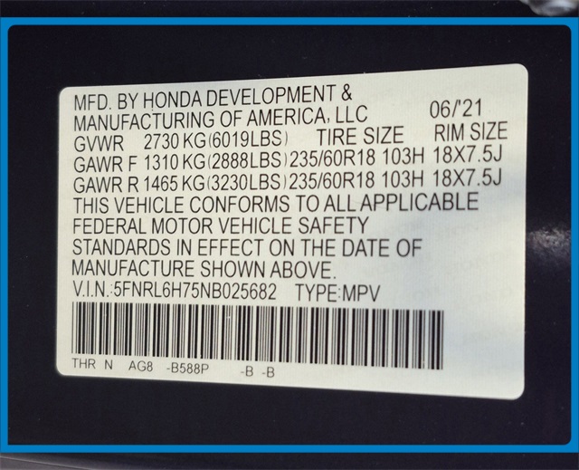 - VIN : 5FNRL6H75NB025682