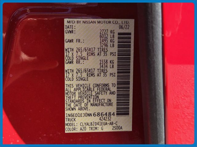 - VIN : 1N6ED1EJ0NN686484