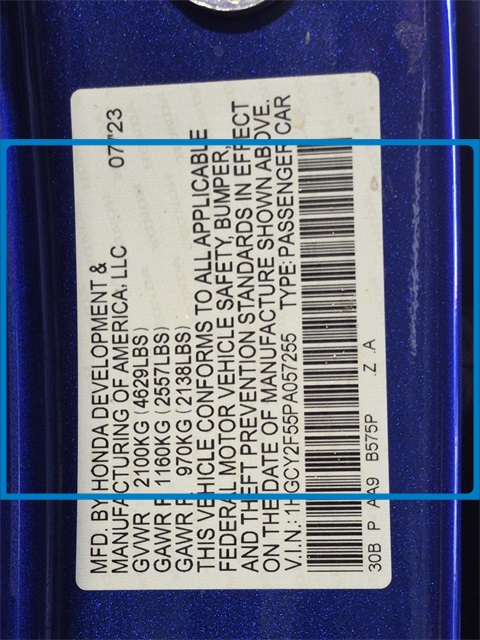 - VIN : 1HGCY2F55PA057255