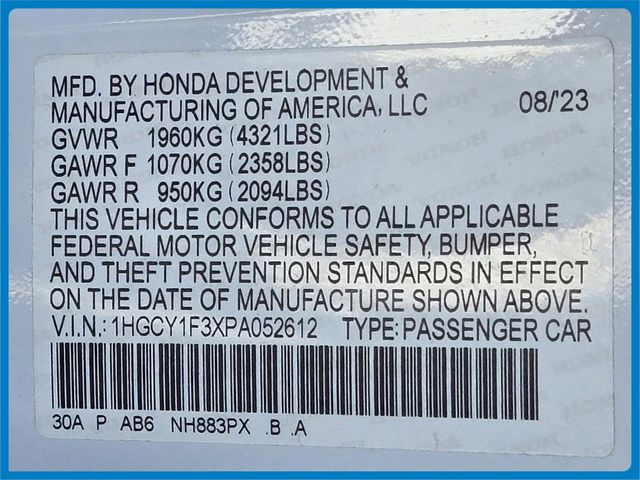 - VIN : 1HGCY1F3XPA052612