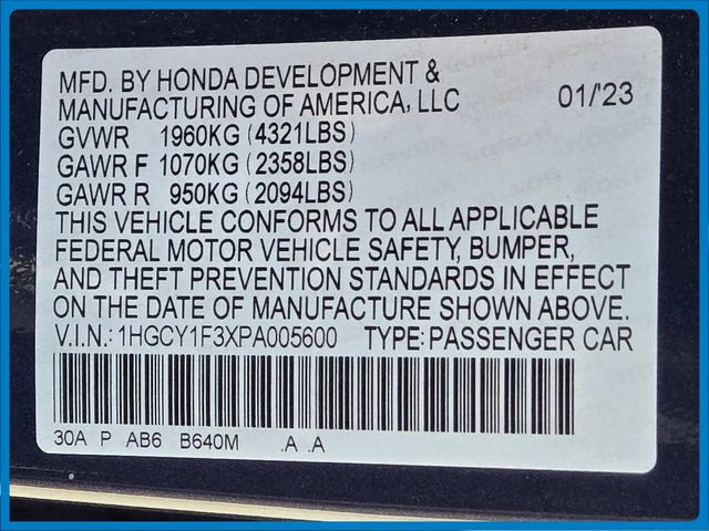 - VIN : 1HGCY1F3XPA005600