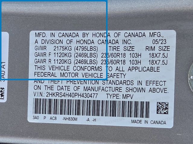 - VIN : 2HKRS4H40PH430477