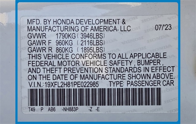 - VIN : 19XFL2H81PE022985