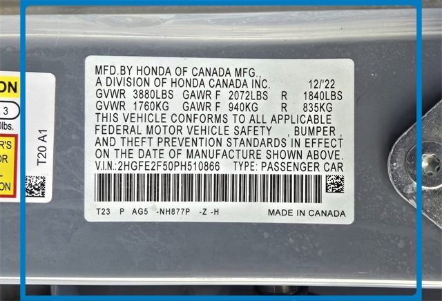 - VIN : 2HGFE2F50PH510866