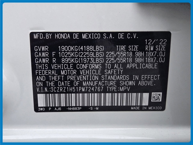 - VIN : 3CZRZ1H51PM724767