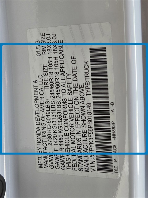 - VIN : 5FPYK3F56PB018149