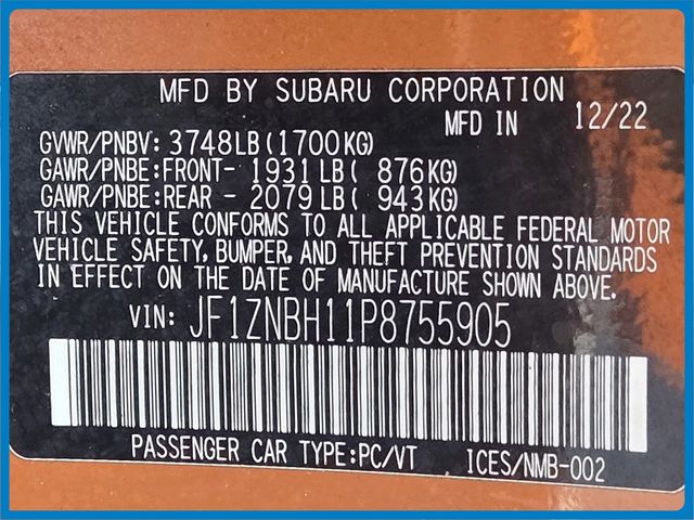 - VIN : JF1ZNBH11P8755905