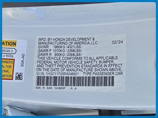 - VIN : 1HGCY1F25RA048901