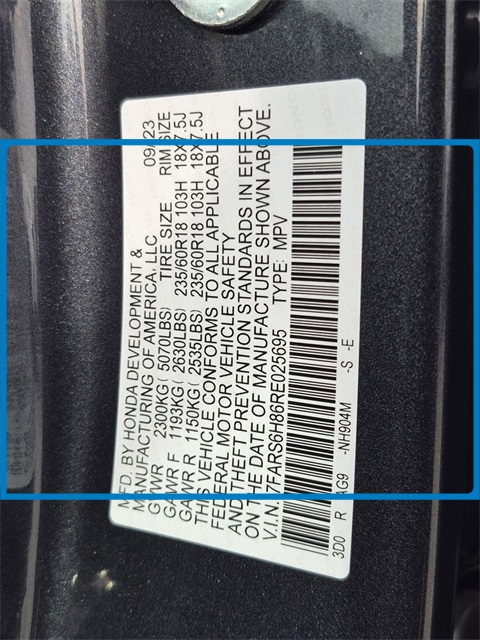 - VIN : 7FARS6H86RE025695