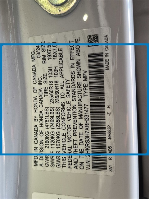 - VIN : 2HKRS3H7XRH331477
