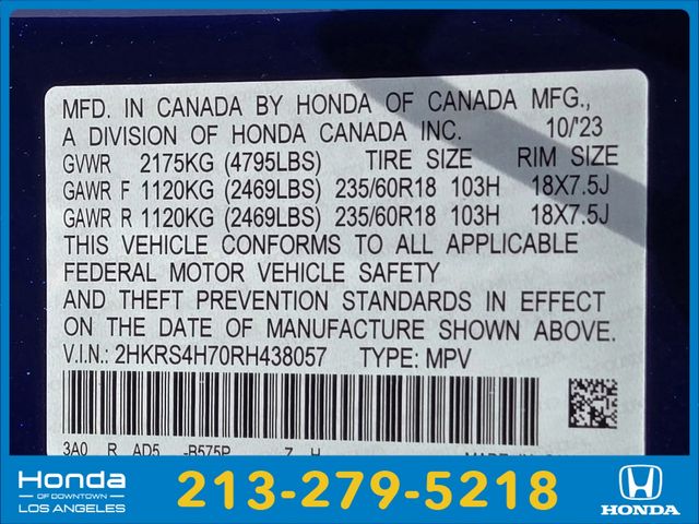 - VIN : 2HKRS4H70RH438057