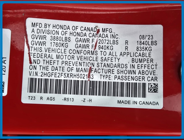 - VIN : 2HGFE2F5XRH502163