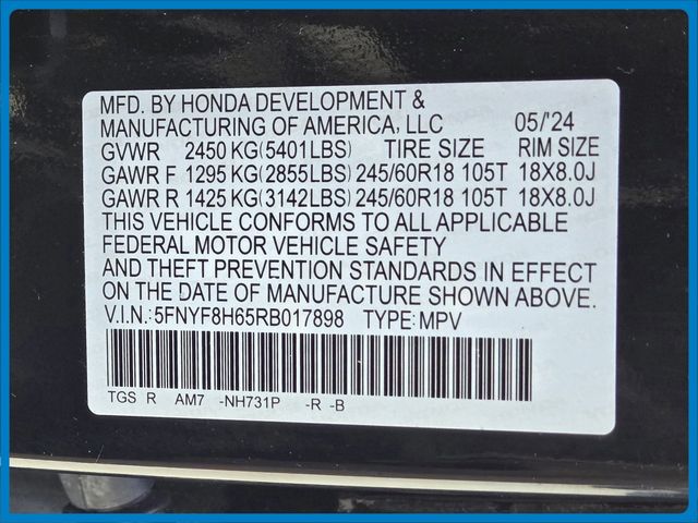 - VIN : 5FNYF8H65RB017898