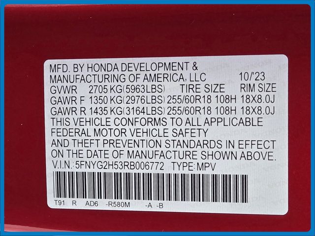 - VIN : 5FNYG2H53RB006772
