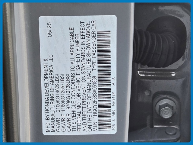 - VIN : 1HGCY2F68SA051838