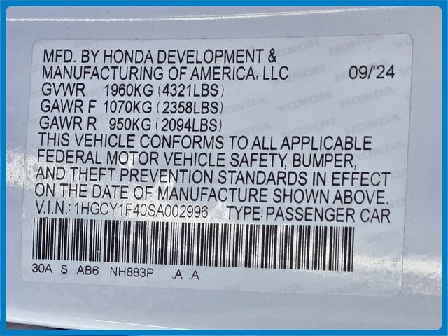 - VIN : 1HGCY1F40SA002996