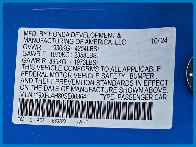 - VIN : 19XFL4H80SE003641