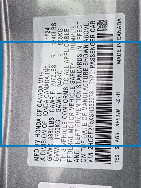 - VIN : 2HGFE2F5XSH553278