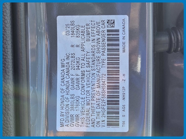 - VIN : 2HGFE2F58SH584772